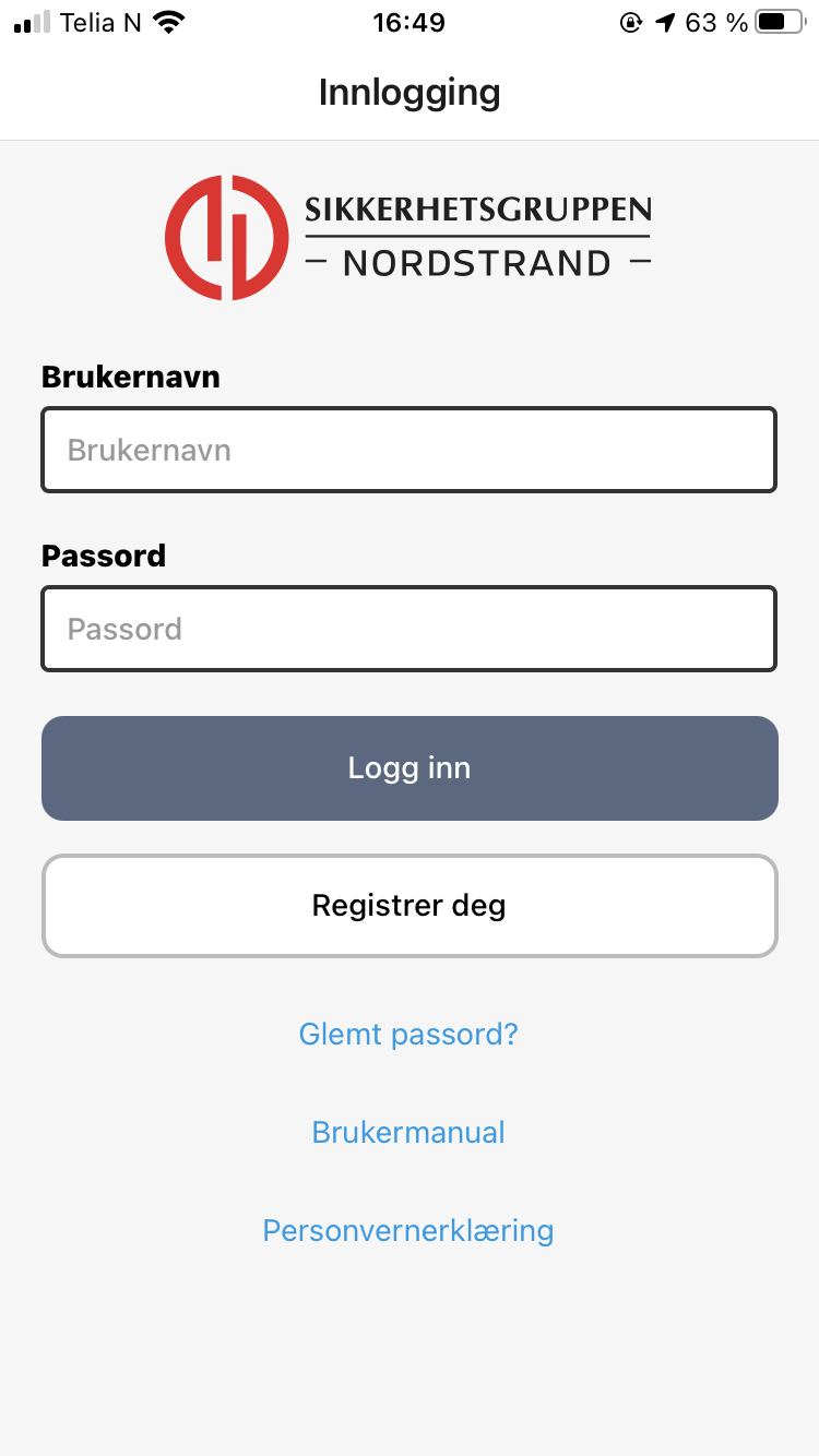 1. Logg på SOS appen med personlig bruker
